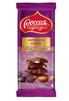 Шоколад РОССИЯ молочный шоколад, миндаль, изюм